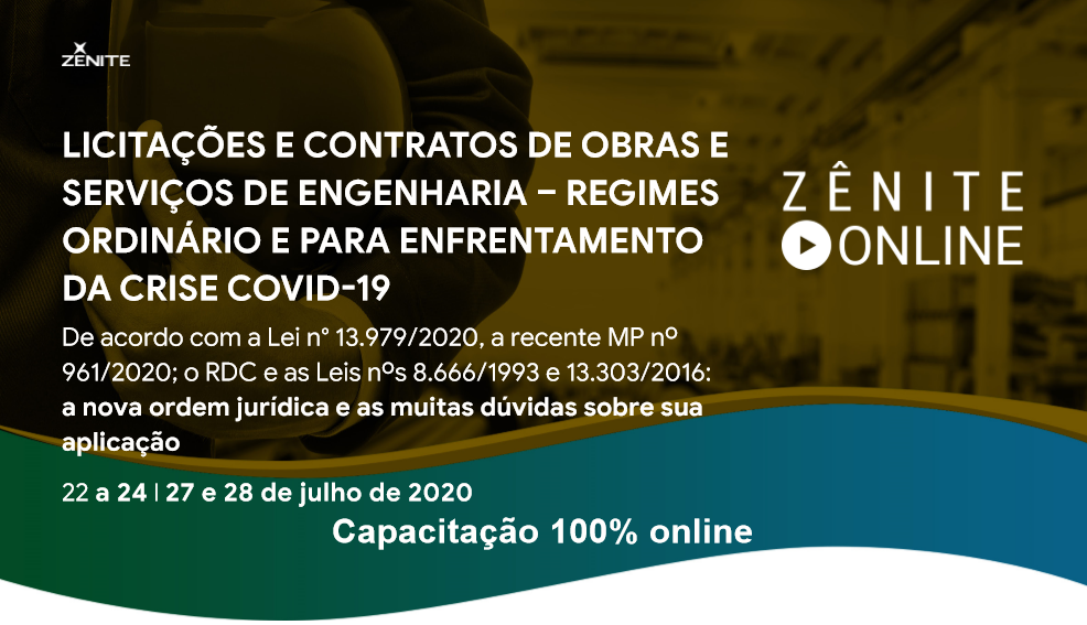 Gostou do conteúdo acima? Que tal dominar a contratação de obras e serviço de engenharia, pelos regimes ordinário – Leis 8.666/1993, 13.303/2016 e 12.462/2011 – e para enfrentamento do covid-19 – LINDB e MPs 961 e 966?
