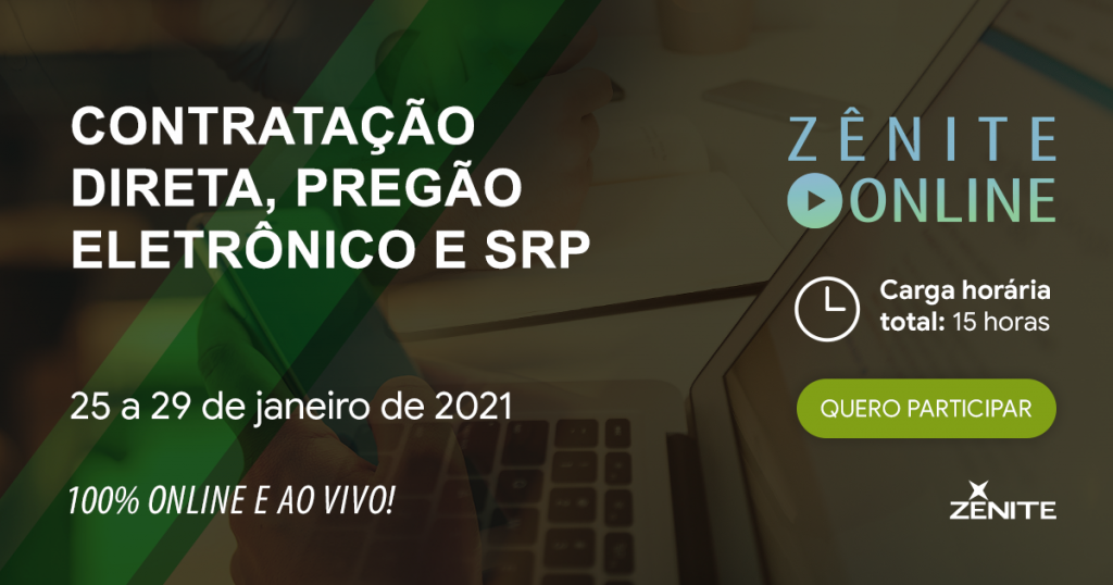 Versão do material acima está disponível no ZÊNITE FÁCIL, ferramenta que reúne todo o conteúdo produzido pela Zênite sobre contratação pública. Solicite acesso cortesia para conhecer a solução: comercial@zenite.com.br ou pelo telefone: (41) 2109-8660.